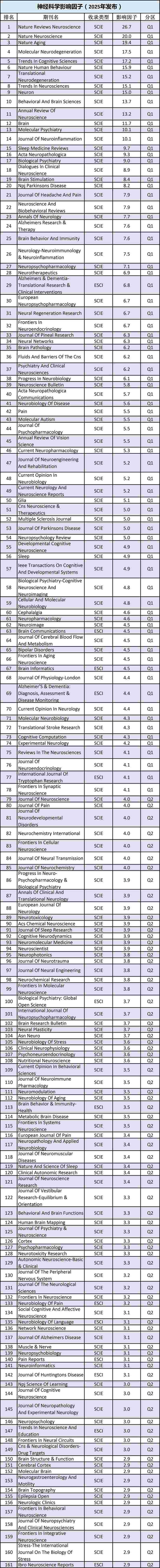 埃米编辑整理神经科学类期刊影响因子,供您参考。