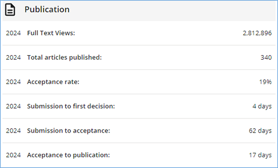 审稿时间参考:从提交到接收的时间一般是62天(中位数)。
