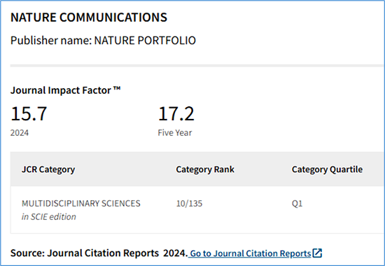 期刊名称:Nature Communications(NATURE PORTFOLIO出版)