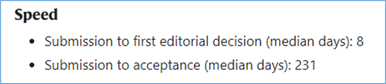 审稿时间参考:从提交到接收的时间一般是231天(中位数)。
