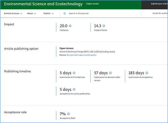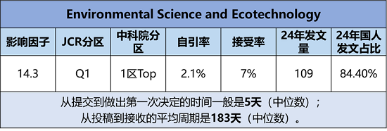 期刊官网:https://www.sciencedirect.com/journal/environmental-science-and-ecotechnology