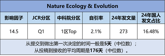 《Nature Ecology & Evolution》(中文名称:自然生态学与进化)创刊于2017年,出版周期为Monthly(月刊),由Springer Nature出版。