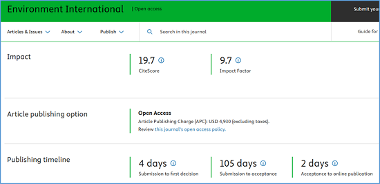 期刊官网:https://www.sciencedirect.com/journal/environment-international