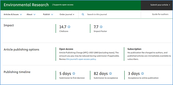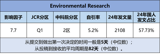期刊官网:https://www.sciencedirect.com/journal/environmental-research