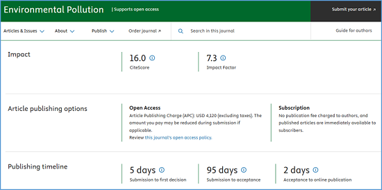 期刊官网:https://www.sciencedirect.com/journal/environmental-pollution