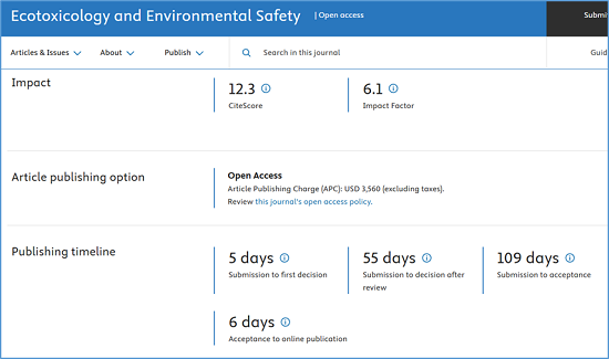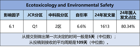 期刊官网:https://www.sciencedirect.com/journal/ecotoxicology-and-environmental-safety