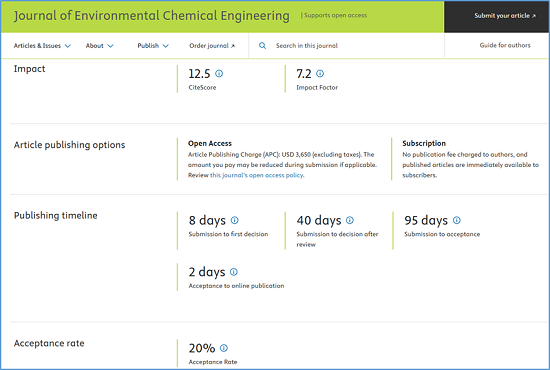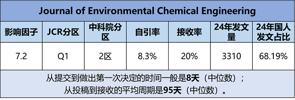 期刊官网:https://www.sciencedirect.com/journal/journal-of-environmental-chemical-engineering