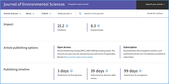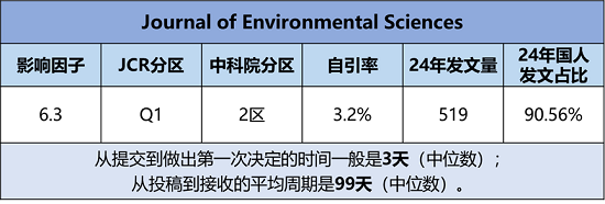 期刊官网:https://www.sciencedirect.com/journal/journal-of-environmental-sciences
