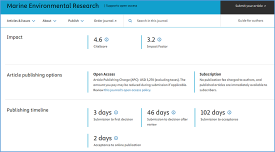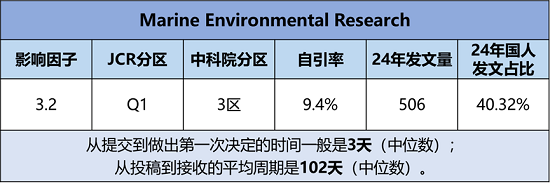 期刊官网:https://www.sciencedirect.com/journal/marine-environmental-research