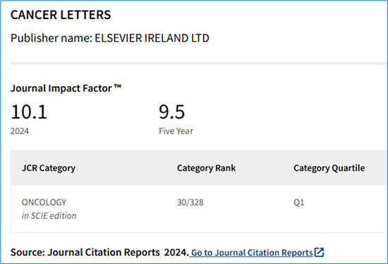 期刊名称:Cancer Letters(ELSEVIER出版)
