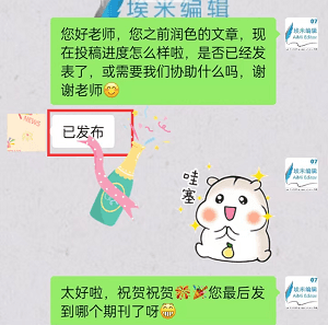 有幸参与了埃米编辑与协和医学院一起组织的斯坦福大学SCI精品写作课程的线上培训,这是第一次系统学习了如何写一篇专业的SCI论文。也因为这个课程让我对埃米编辑产生了认可和好感。在埃米的协助下,润色的5篇手稿均已发表。整体来说埃米编辑的服务在专业性、润色质量和润色速度方面还是优秀的。但是受限于我们自身的写作水平,我们觉得手稿还是有再提升的空间。所以,还是应该更好地提升自身的写作水平,再结合编辑公司的协助,才能真正得到一个让人满意的手稿,当然这需要不断的学习和训练。