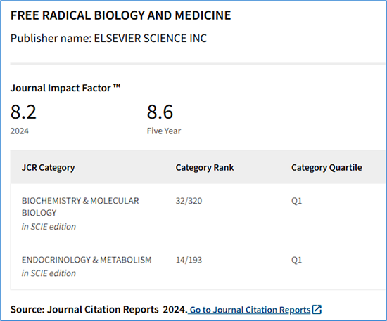 期刊名称:Free Radical Biology and Medicine(ELSEVIER出版)