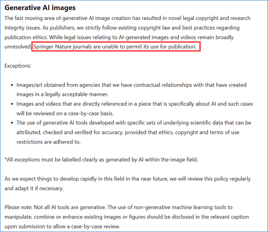 Springer Nature关于生成式AI图像创作的说明