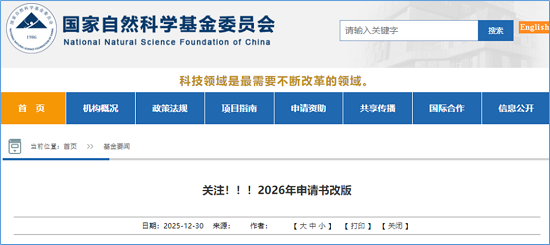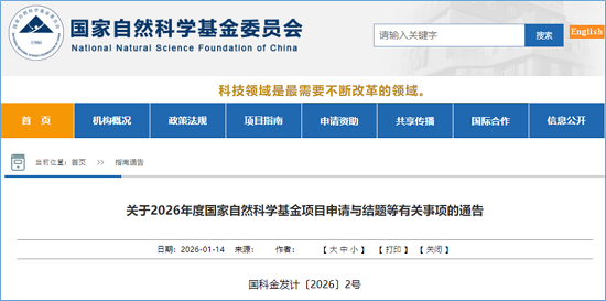 2026年1月14日国家自然科学基金委发布了《关于2026年度国家自然科学基金项目申请与结题等有关事项的通告》。