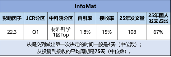 《InfoMat》创刊于2019年,由WILEY出版社出版,出版周期为Quarterly(季刊)。