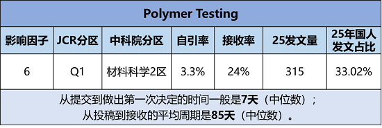 期刊官网:https://www.sciencedirect.com/journal/polymer-testing