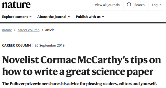 生物学家Van Savage和Pamela Yeh将麦卡锡多年来关于写作的建议整理成文,发表在Nature上。