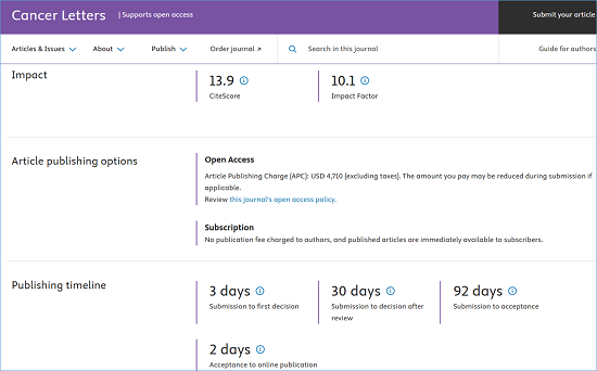 期刊官网:https://www.sciencedirect.com/journal/cancer-letters