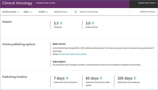 期刊官网:https://www.sciencedirect.com/journal/clinical-oncology