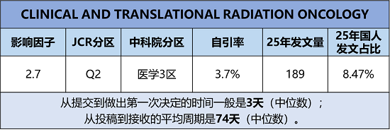 期刊官网:https://www.sciencedirect.com/journal/clinical-and-translational-radiation-oncology