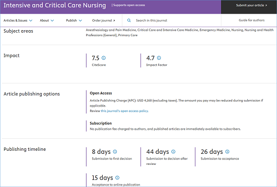 期刊官网:https://www.sciencedirect.com/journal/intensive-and-critical-care-nursing