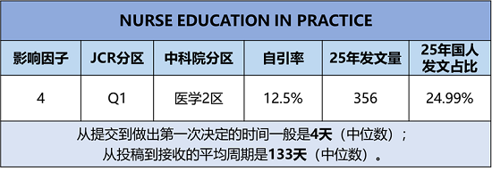 期刊官网:https://www.sciencedirect.com/journal/nurse-education-in-practice