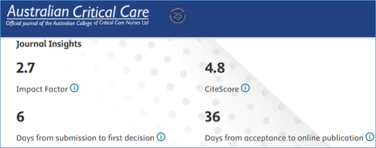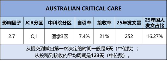 《AUSTRALIAN CRITICAL CARE》创刊于1988年,出版周期为Bimonthly(双月刊),由Elsevier出版社出版。