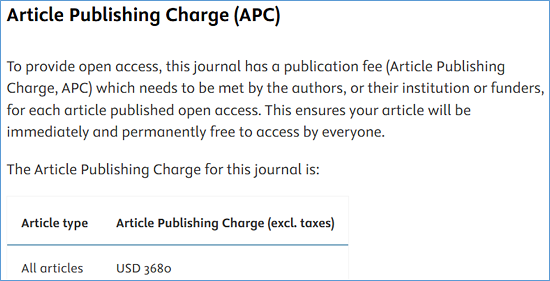 发表模式:订阅 & OA;如选OA,版面费约3820美元。