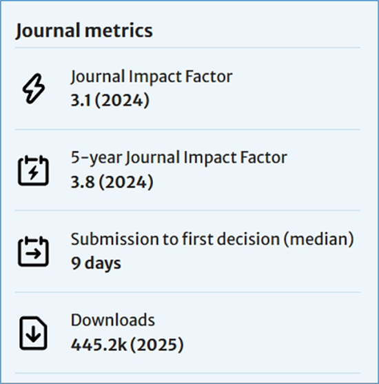 收录稿件类型有:原创论文、临床试验、综述、信件等。