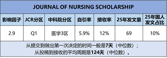 《JOURNAL OF NURSING SCHOLARSHIP》创刊于2000年,出版周期为Bimonthly(双月刊),由WILEY出版社出版。