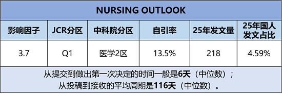 《NURSING OUTLOOK》创刊于1953年,出版周期为Bimonthly(双月刊),由Elsevier出版社出版。