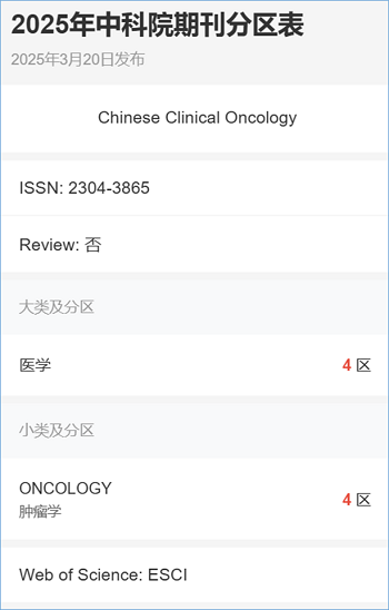 期刊信息:CHINESE CLINICAL ONCOLOGY被ESCI收录,IF 2.5,JCR Q3。