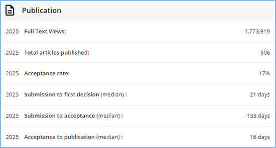 审稿时间参考:从提交到接收的时间一般是133天(中位数)。