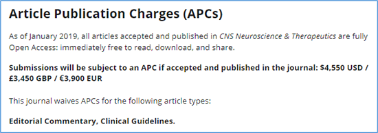 期刊名称:CNS Neuroscience & Therapeutics(WILEY出版)