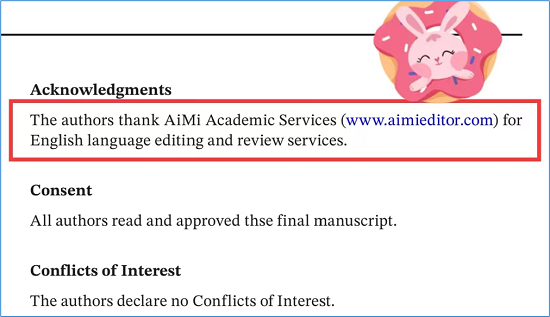 作者初稿润色后,文章成功发表。并在论文致谢部分提到,感谢埃米编辑提供的专业论文润色服务。