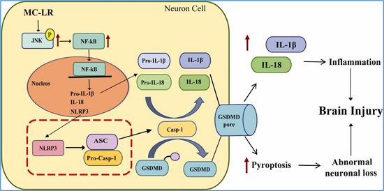 ● MC-LR通过JNK/NF-κB信号通路和神经元焦亡诱导脑损伤。