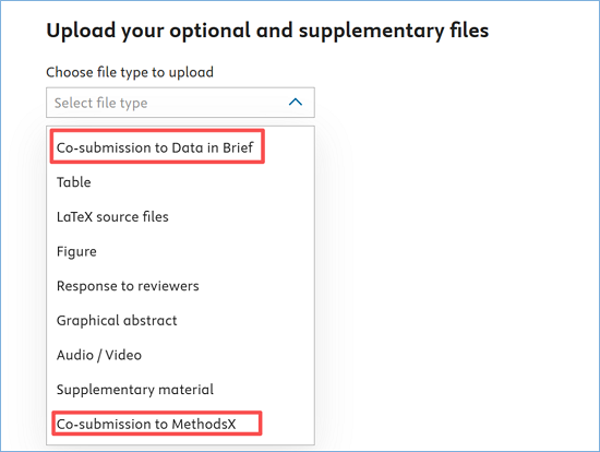 论文投稿到Elsevier(爱思唯尔)旗下期刊时,有时投稿系统会让你提交Co-submission to Data in Brief 和 Co-submission to MethodsX。