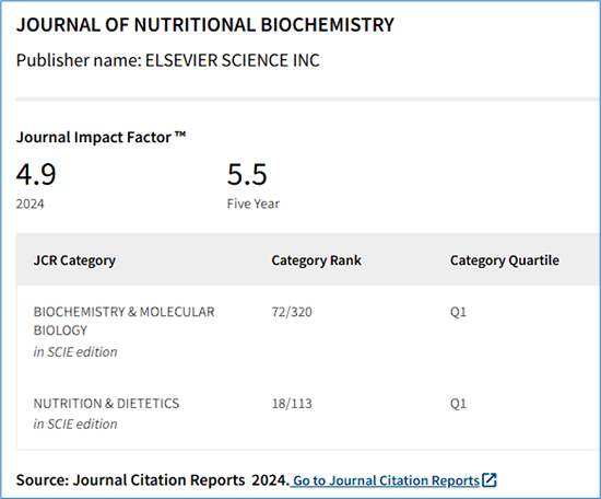 期刊名称:Journal of Nutritional Biochemistry(ELSEVIER出版)