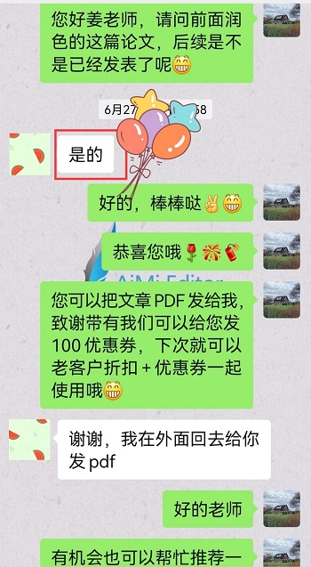 作者初稿润色后,文章顺利发表。并在论文致谢部分提到,感谢埃米编辑提供的专业论文润色服务。作者已在埃米润色2篇论文,均发表到JCR Q1期刊,棒棒哒!