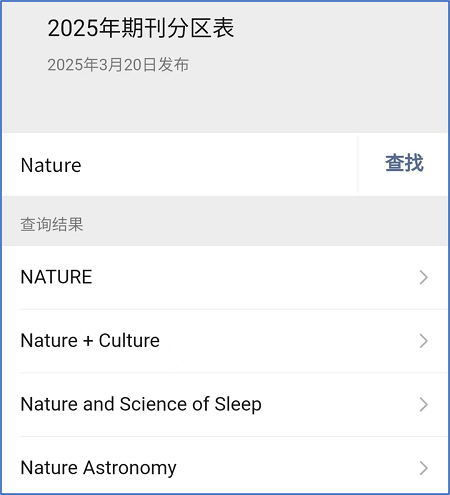 输入期刊后,点击查询结果里的期刊名,即可显示期刊的分区情况。