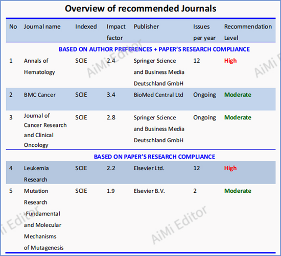 例如,某位作者的研究领域为血液-肿瘤学,文章类型为研究性论文。要求推荐审稿周期相对较快的期刊,并且影响因子大于1,被SCIE收录。
