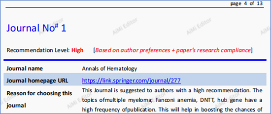 埃米的美国本土的资深专家会根据文章情况以及作者对目标期刊的要求,推荐3-5本目标期刊,并且会出具期刊推荐报告供作者选择。