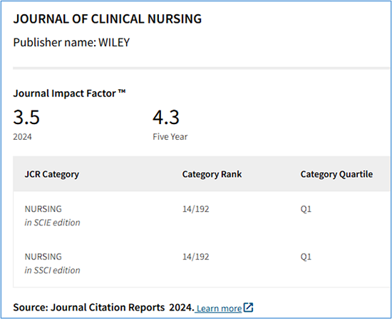 期刊名称:Journal of Clinical Nursing(Wiley出版)