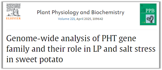 本研究在甘薯中系统鉴定了27个磷酸盐转运蛋白(PHTs)基因,并通过系统发育、共线性、启动子顺式元件及表达分析等方法揭示了其进化关系和功能特征。结果发现,IbPHT1;3、IbPHT1;4、IbPHT1;5和IbPHT3;3在不同组织及低磷胁迫下表达活跃,其中定位于质膜的IbPHT1;5,在转基因拟南芥和酵母中被功能验证参与磷的吸收与转运。研究还发现,盐胁迫显著抑制甘薯对磷的吸收,导致约一半 IbPHT1 亚家族基因表达下调,提示其在盐胁迫响应中可能发挥重要作用。该研究为提升甘薯磷利用效率和抗逆性能提供了理论依据和潜在分子靶标。