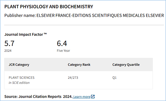 期刊名称:Plant Physiology and Biochemistry(Elsevier出版)