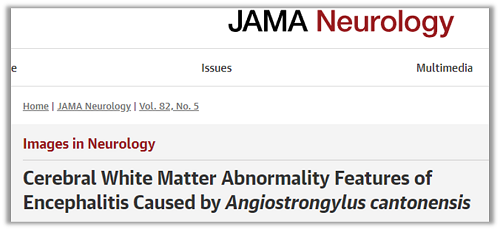 其临床表现为发热、意识障碍及脑白质病灶,常规治疗无效。经阿苯达唑治疗后症状明显好转。该病例提示,急性发热伴快速进展的脑白质病灶及嗜酸性粒细胞升高,尤其有食用未熟食物史时,应警惕寄生虫感染,尽早进行mNGS等检查明确诊断并及时治疗。