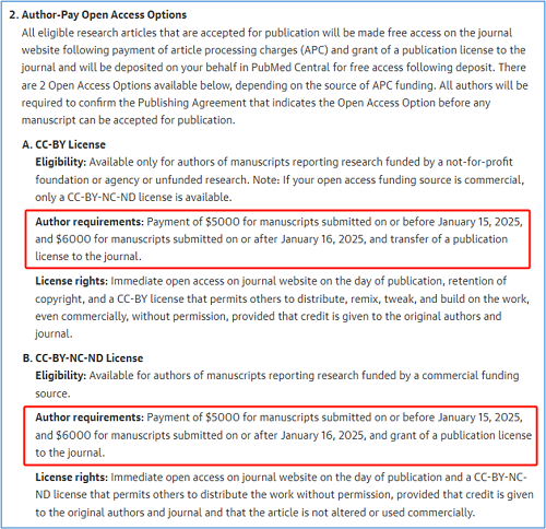 ★ 选择付费开放获取,则版面费为5000美元(2025年1月15日或之前提交的稿件),或6000美元(2025年1月16日或之后提交的稿件)。在发表当天立即在期刊网站上开放访问。