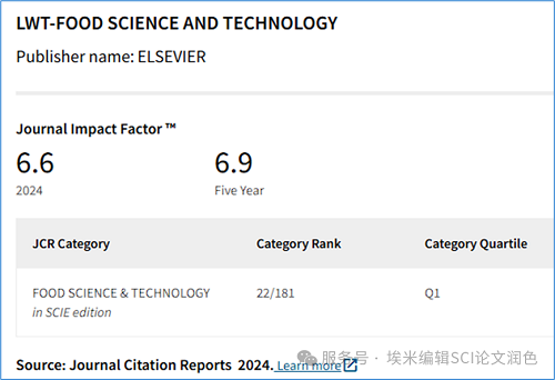 恭喜经埃米编辑参与润色的文章,成功发表在SCI期刊:LWT,JCR分区:食品科技Q1,中科院SCI期刊分区:农林科学1区Top,IF 6.6。