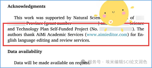 作者在论文致谢部分提到,感谢埃米编辑提供的专业论文润色服务。
