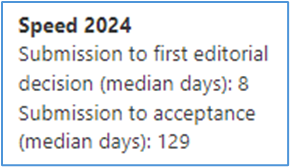 审稿时间参考:从提交到论文接收的时间一般是129天(中位数)。